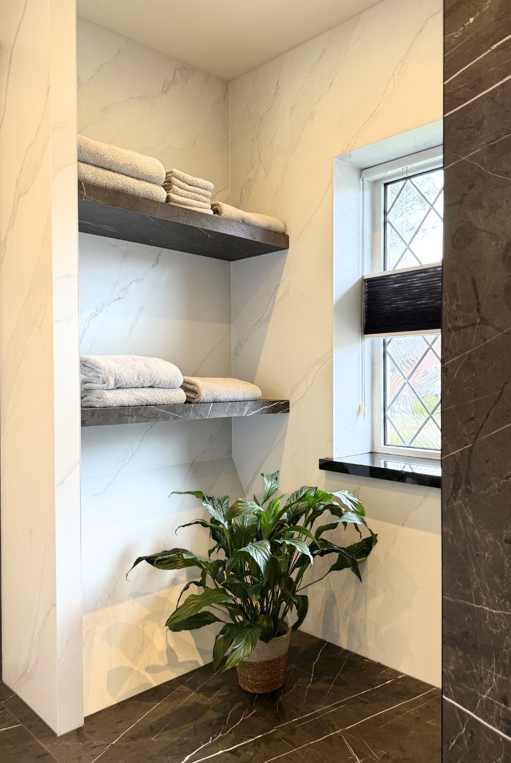 Unieke afwerking voor badkamers en andere binnenshuis renovaties. 100% watervast en volledig recyclebaar.