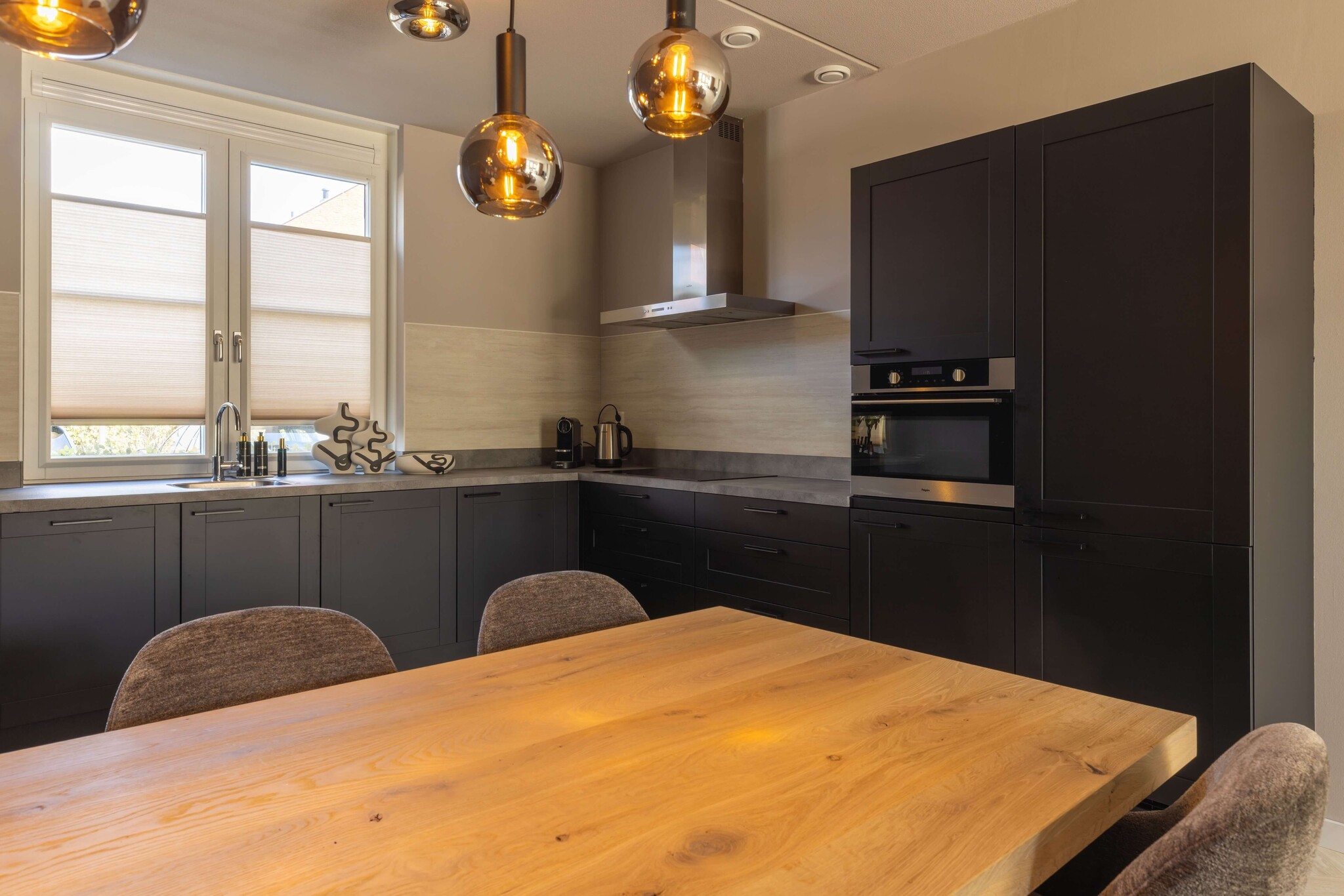 Dit paneel bracht precies de juiste dosis contrast ten opzichte van de rustige basiskleuren in het interieur. Door het gebruik van Travertina Alba op de keukenwand ontstond een rijkere beleving: warm, uitnodigend en tegelijk strak en modern. Voor Monique werd het meteen duidelijk: “Dit is eindelijk de keuken waar ik me thuis voel.”