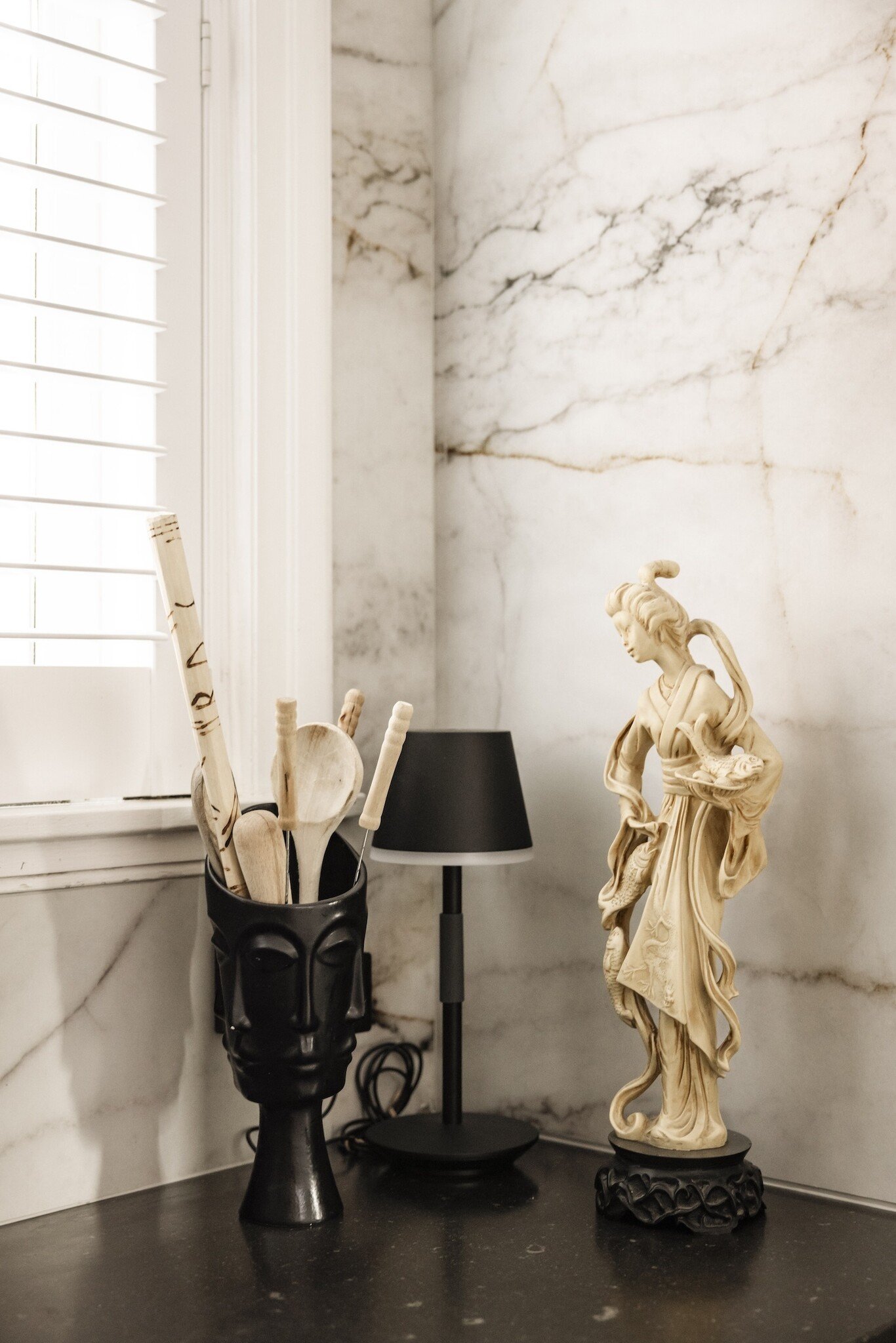 Luce Dorata brengt een verfijnde balans tussen elegantie en warmte, perfect passend bij de mix van stijlen in dit huis. Voor Lewis, die houdt van uitgesproken design en wereldse invloeden, voegt het paneel een vleugje glamour toe. Voor René, die verlangt naar rust en helderheid, biedt het paneel structuur en reflectie zonder te overheersen.